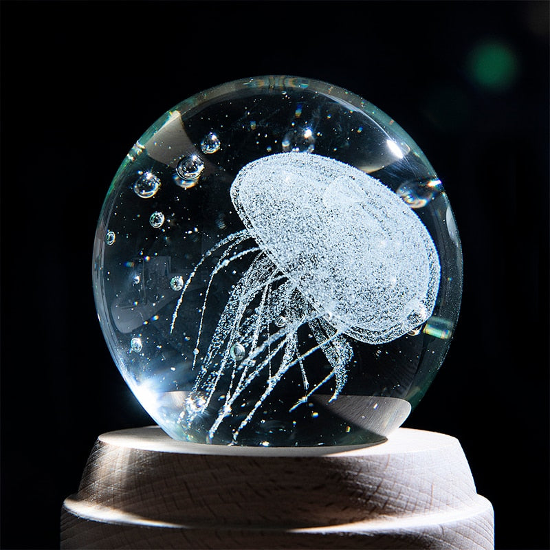 Product Name:H&D White Jellyfish Sculpture Glow in the Dark Fengshui Glass Ball Figurine Ornament Handblown Artwork Home Office Decor Gift